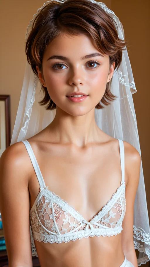 AI Adult Gallery: A Young Woman in a Lace Wedding Dress